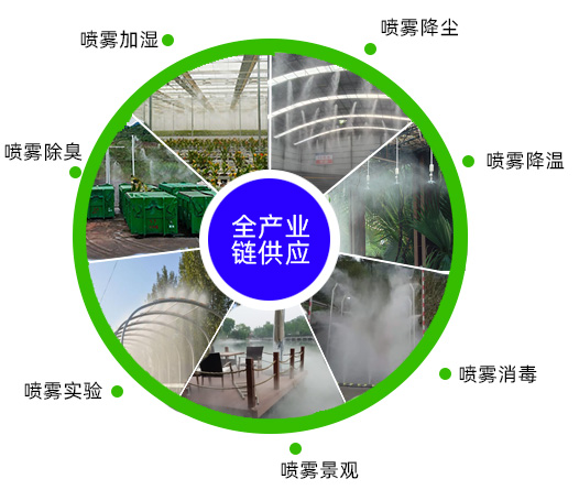 可OEM代加工生產對應的噴霧環(huán)保系列產品,從機組、管件、終端霧化噴頭,綜合布局設計。免費提供設計方案。